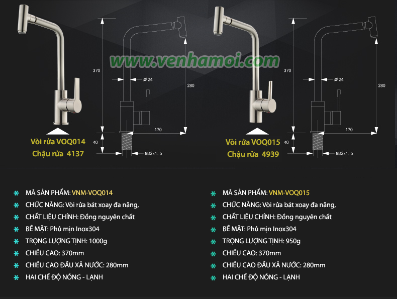 - Chất liệu: INOX304 cao cấp. - Độ dày: 0,8mm. - Công nghệ phủ: Phủ Inox sợi mịn hoàn hảo, chống ăn mòn, chống bám dầu, dễ rửa sạch. - Bề mặt phủ: 3 lớp - Thành chậu được làm cao hơn để khi sử dụng tránh nước tràn ra ngoài, dễ dàng lau dọn vệ sinh - Sản xuất với công nghệ KHKT cao của Đức - xử lý bằng Công Nghệ SIL VINOX, chống ăn mòn, chống rỉ sét - Vòi rửa làm bằng đồng nguyên chất phủ Inox tán mịn, có thể xoay 360 độ tiện lợi, đa năng khi sử dụng |