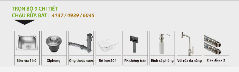 - Chậu được chia làm 03 loại: tùy thuộc vào kích thước + Loại 4137: Kích thước 41x37cm, kèm vòi rửa lõi đồng xoay 360 đa năng. + Loại 4939: Kích thước 49x39cm, kèm vòi rửa lõi đồng xoay 360 đa năng. + Loại 6045: Kích thước 60x45cm, kèm vòi rửa lõi đồng xoay 360 đa năng. |