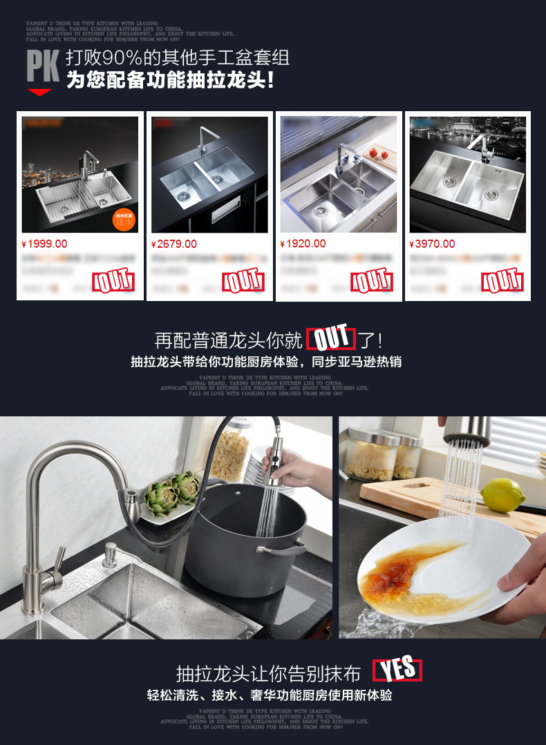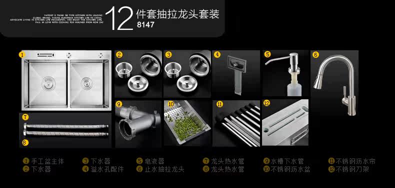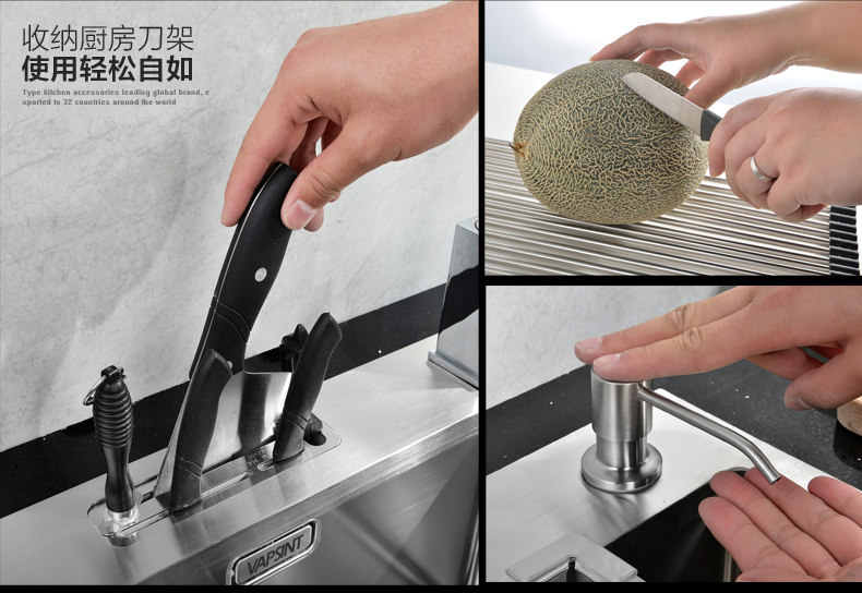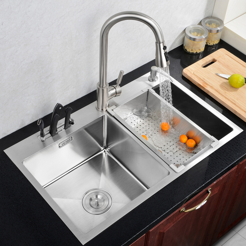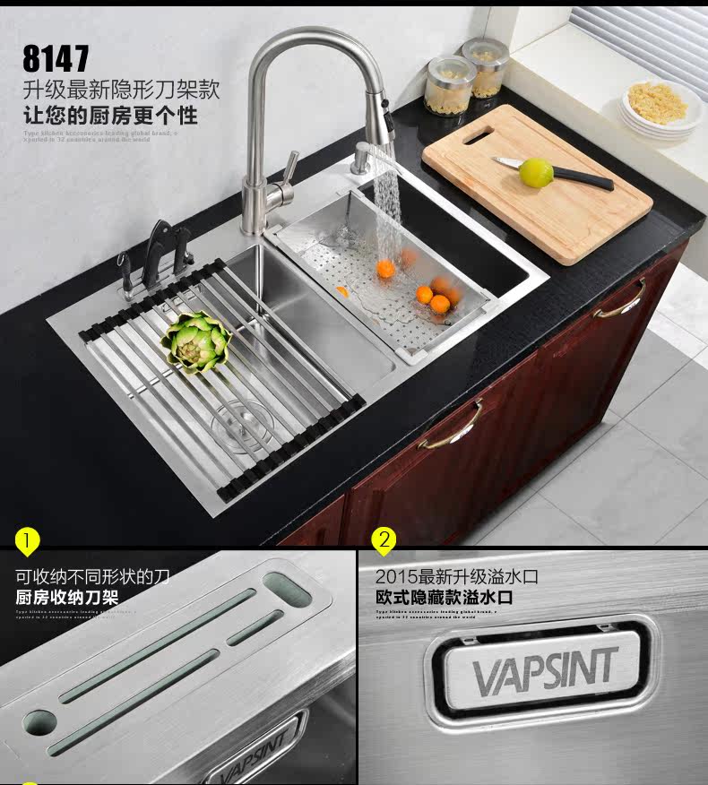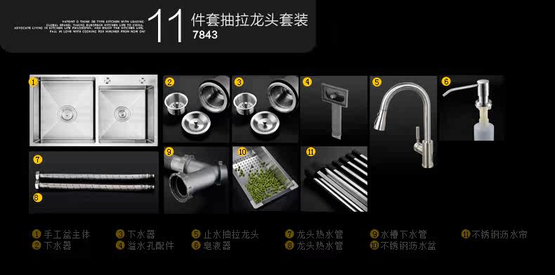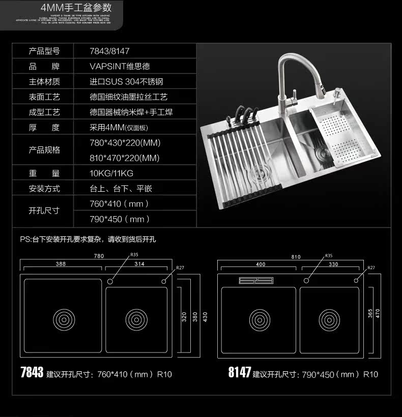 - Chậu được chia làm 04 loại: tùy thuộc vào kích thước và phụ kiện đi kèm. - Các đặc điểm khác nhau: + Loại 7843: Kích thước 78x43cm, trọn bộ 8 phụ kiện, KHÔNG kèm vòi rửa bát, KHÔNG kèm giá dao kéo . + Loại 7843: Kích thước 78x43cm, trọn bộ 11 phụ kiện, KÈM vòi rửa bát, KHÔNG kèm giá đựng dao kéo. + Loại 8147: Kích thước 81x47cm, trọn bộ 9 phụ kiện, KHÔNG kèm vòi rửa bát, KÈM giá đựng dao kéo. + Loại 8147: Kích thước 81x47cm, trọn bộ 12 phụ kiện, KÈM vòi rửa bát, KÈM giá đựng dao kéo. - VÒI RỬA BÁT kèm theo chậulà model: VNM-VQY016 (Click xem thông tin chi tiết) |