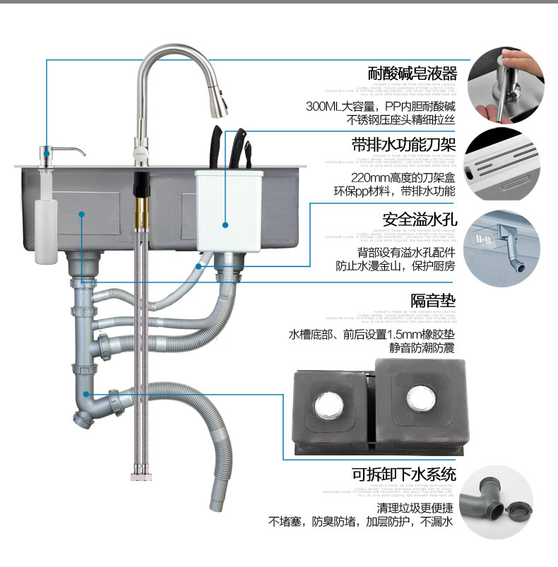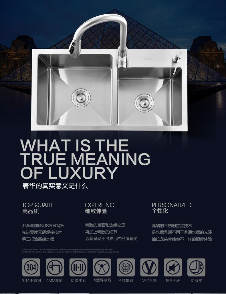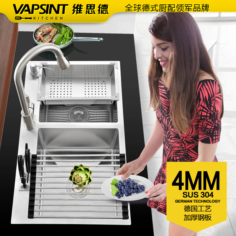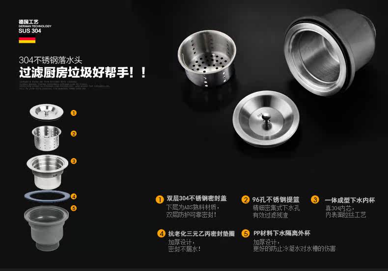 - Chất liệu: INOX SUS 304 cao cấp. - Độ dày: 4 mm. - Công nghệ phủ bề mặt: Kỹ thuật phủ mịn, phủ 3 lớp kim loại nguyên chất. Lớp phủ bề mặt tốt hay không có ảnh hưởng trực tiếp đến việc chống bám dính vết mỡ của chậu rửa bát. Vì thế với kỹ thuật phủ mịn 3 lớp kim loại bề mặt chậu luôn sáng bóng chống bụi bẩn, chống dầu mỡ bám dính đến 78%. - Kỹ thuật phủ Inox tạo nên sự khác biệt so với chậu rửa bát thông thường. - Thiết kế rãnh dẫn nước: 4 rãnh, xả nước trôi nhanh chóng, đảm bảo chậu rửa được sạch sẽ khô ráo. - Mặt dưới chậu rửa bát có thiết kế tấm mút cao su dày 1.5mm chống rung, chống ồn. |