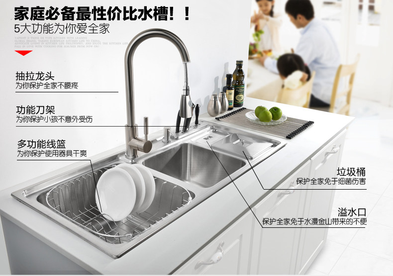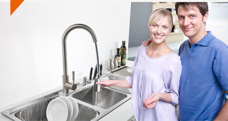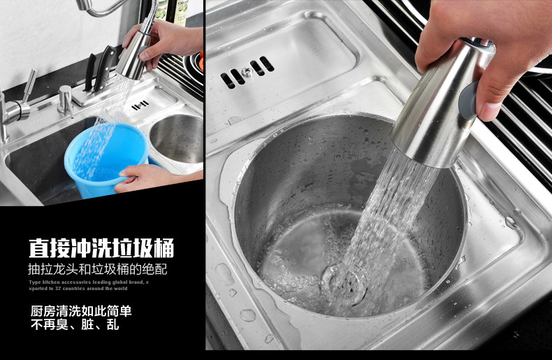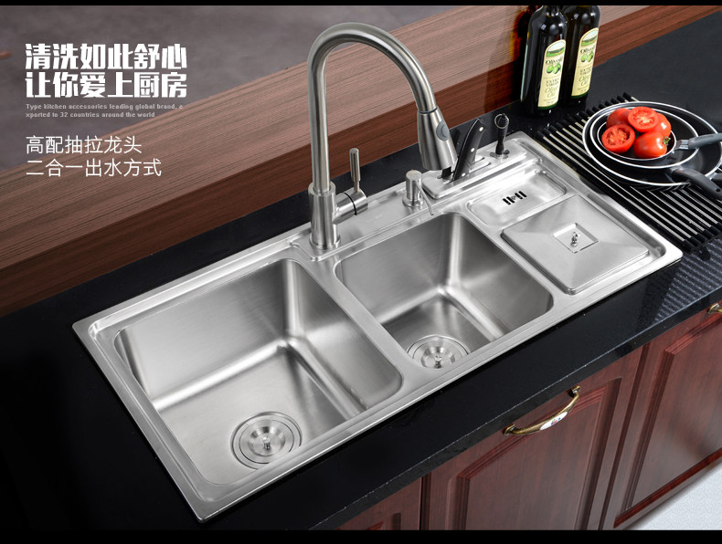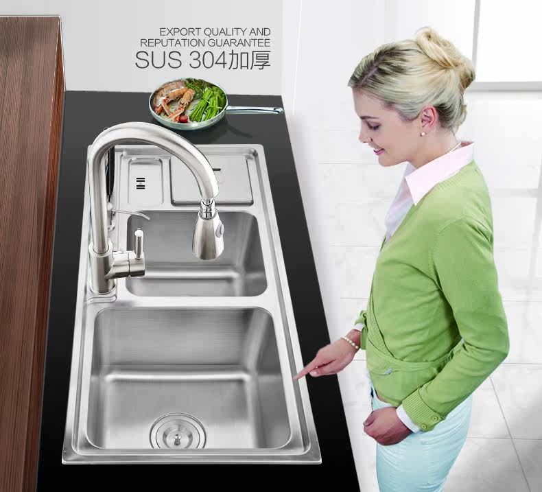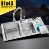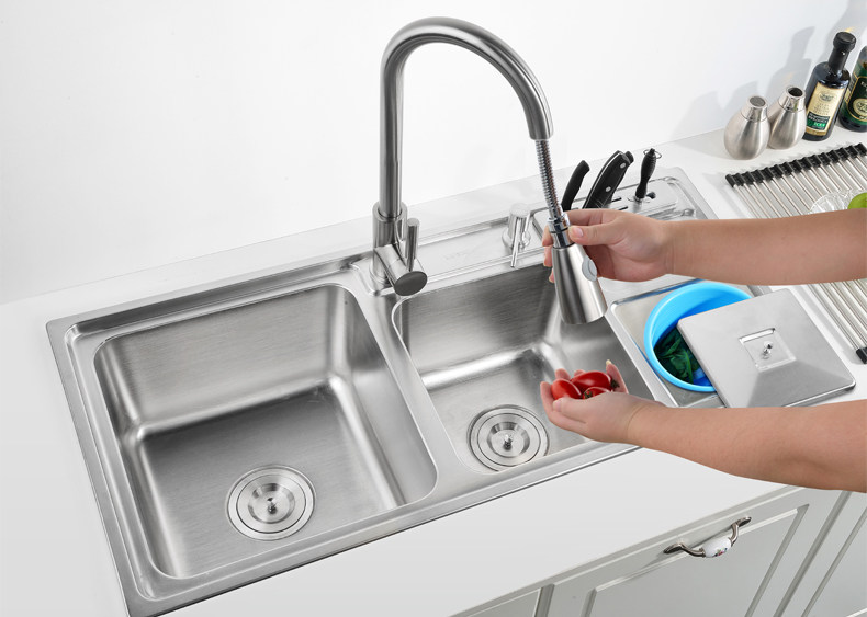 Chậu rửa bát 2 hố cỡ lớn Inox304 kèm vòi rửa kéo dài đa năng