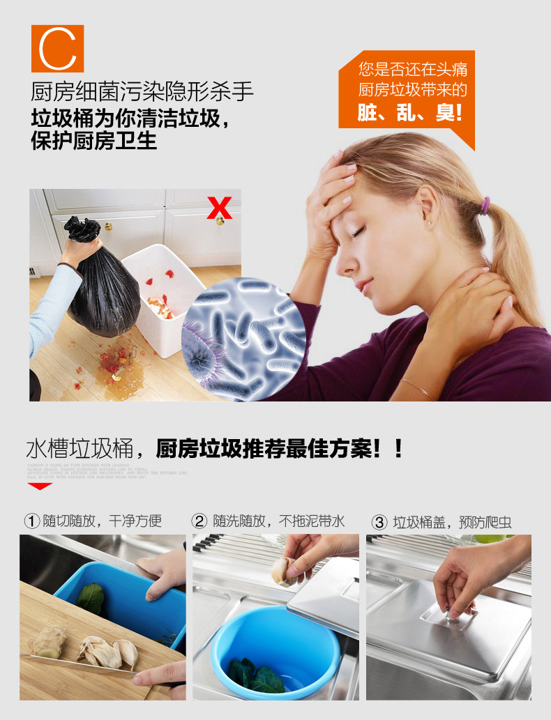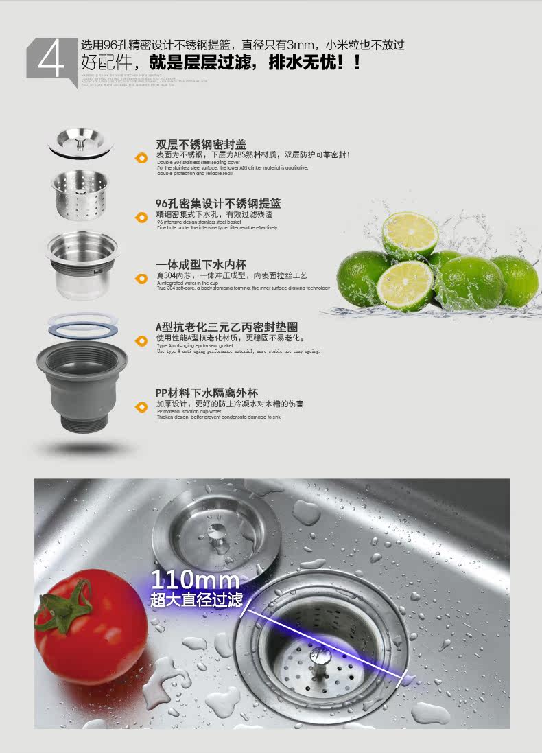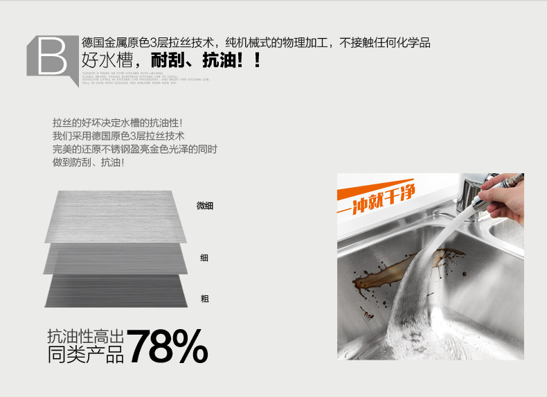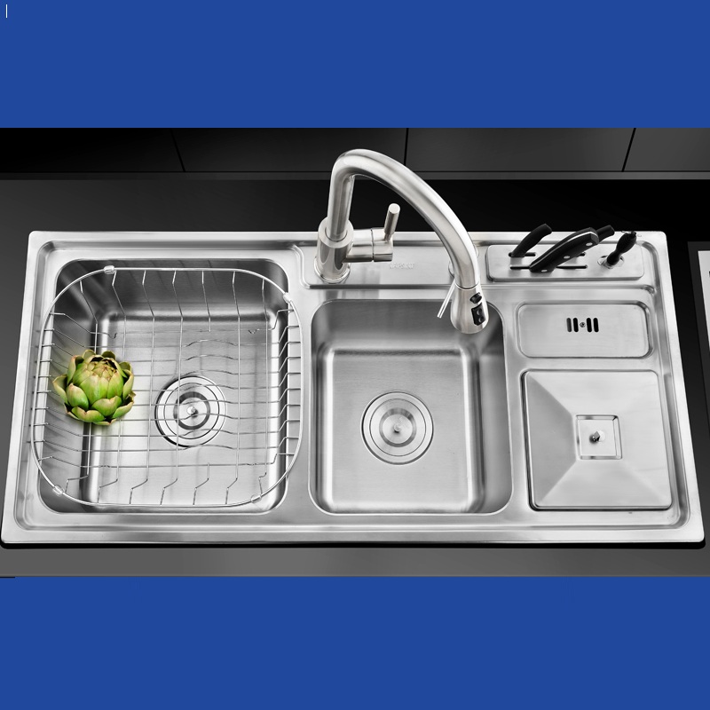 - Chất liệu: INOX304 cao cấp. - Độ dày: 0,8mm. - Công nghệ phủ: Công nghệ phủ bề mặt: Kỹ thuật phủ mịn, phủ 3 lớp kim loại nguyên chất. Lớp phủ bề mặt tốt hay không có ảnh hưởng trực tiếp đến việc chống bám dính vết mỡ của chậu rửa bát. Vì thế với kỹ thuật phủ mịn 3 lớp kim loại bề mặt chậu luôn sáng bóng chống bụi bẩn, chống dầu mỡ bám dính đến 78%. - Thùng rác tiện dụng đi kèm chậu rửa bát: cắt gọt, dọn dẹp tiện lợi nhanh chóng, sạch sẽ, là phương án tối ưu nhất xử lý rác mỗi lần làm bếp. - Mỗi bên chậu được gia cố thêm miếng đệm cao su dày 3mm dùng để cách âm. - Chậu rửa bát được thiết kế dài, sâu khác biệt so với bồn rửa thông thường, để được nhiều vật dụng như xoong, chảo, nồi cỡ lớn. - Sản xuất trên dây chuyền công nghệ CHLB Đức - SUS 304, Sử dụng kỹ thuật tán mịn, phủ quang bề mặt inox chống ăn mòn, chống gỉ sét, không nhiễm từ, sáng bóng, đảm bảo độ bền cao. |