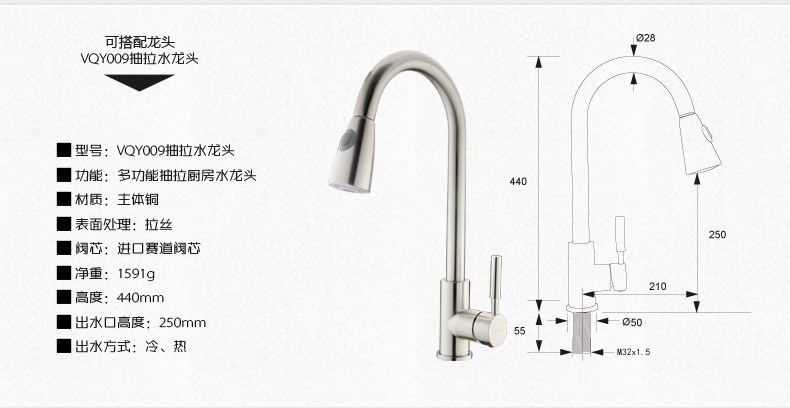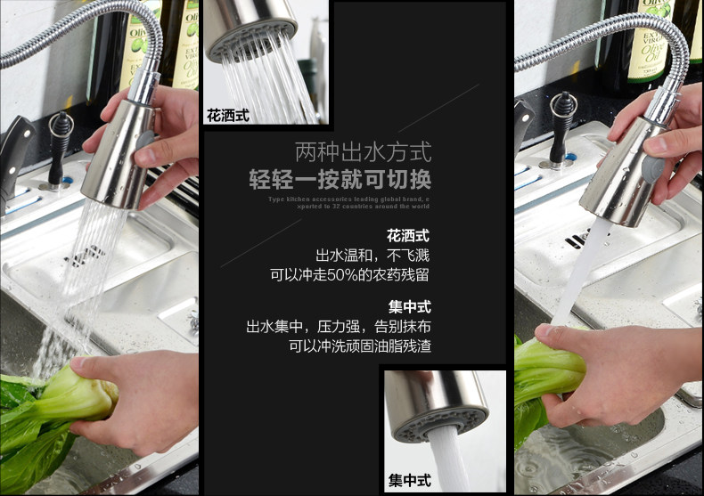 Vòi rửa bát kéo dài lõi đồng nguyên chất hai chế độ xả