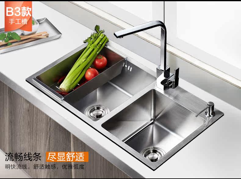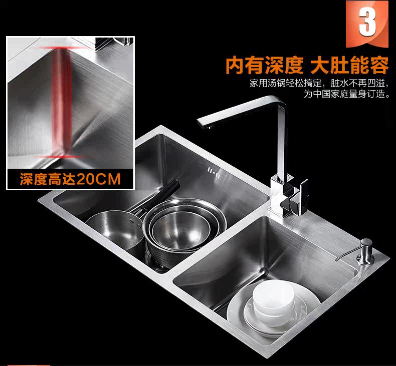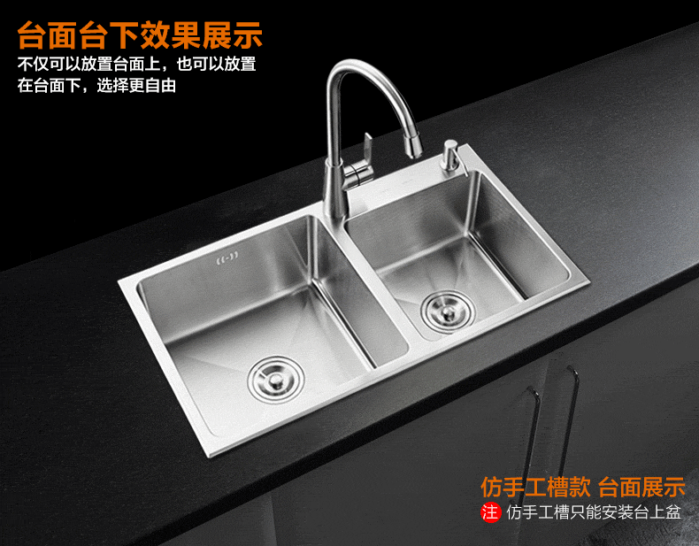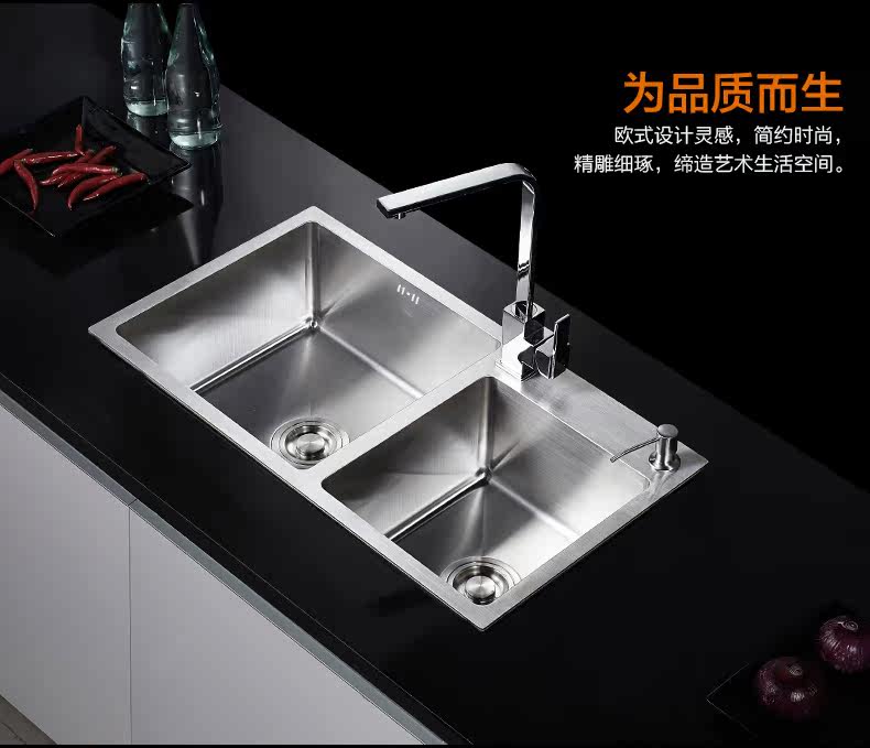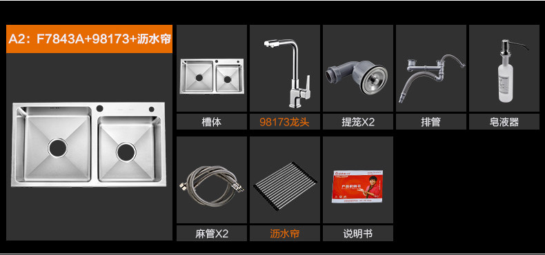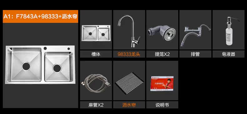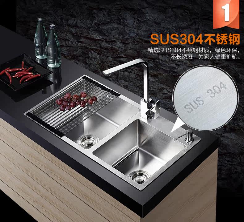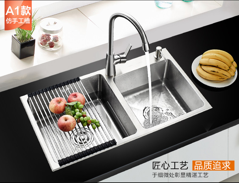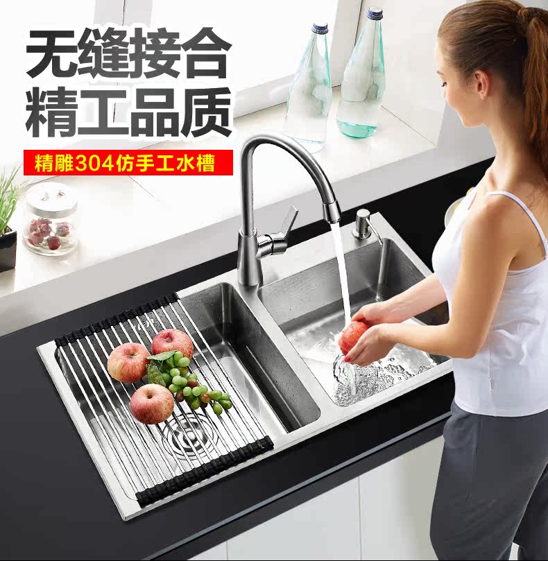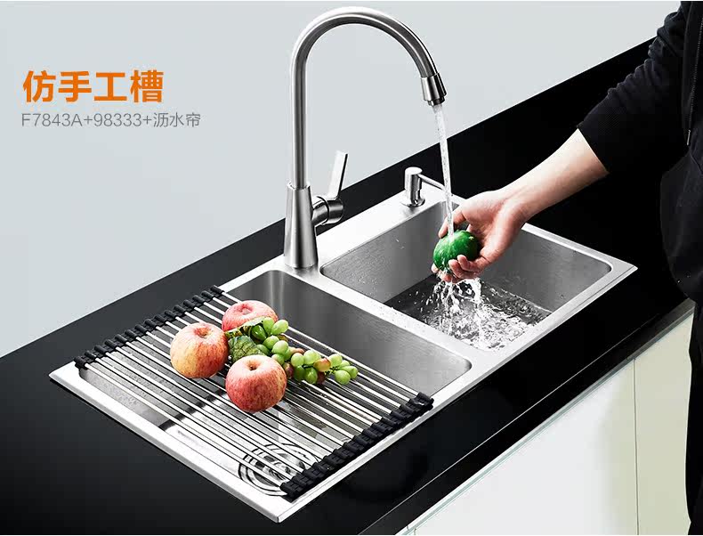 Chậu rửa bát 2 ngăn chất liệu Inox 304 kèm vòi rửa bát VNM-F7843A