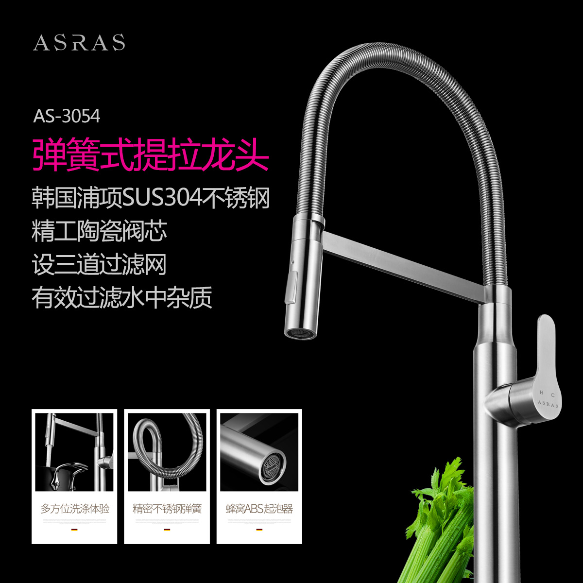 Vòi rửa bát inox304 vòi xoay đa chiều VNM-ARAS-3679