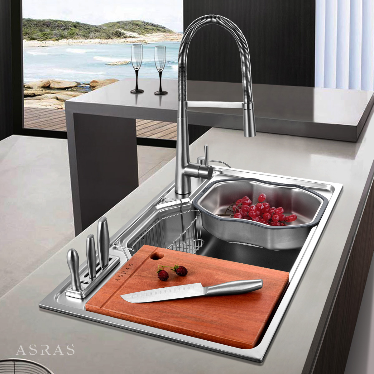 Chậu rửa bát kèm giá để dao tiện dụng VNM-ARAS-6359