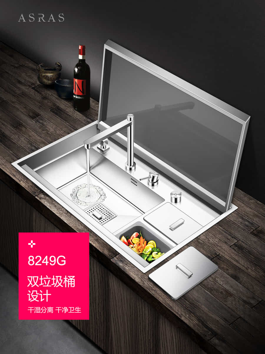 Chậu rửa bát kèm máy rửa cốc có nắp đậy VNM-ARAS-2944