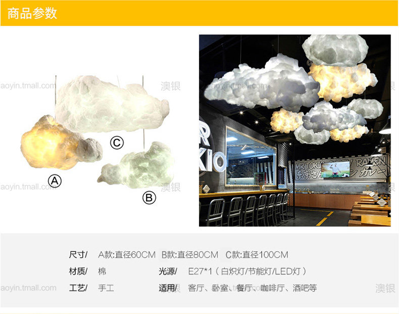 Đèn trang trí nhà hàng - quán cafe hình đám mây VNM-AY-10016