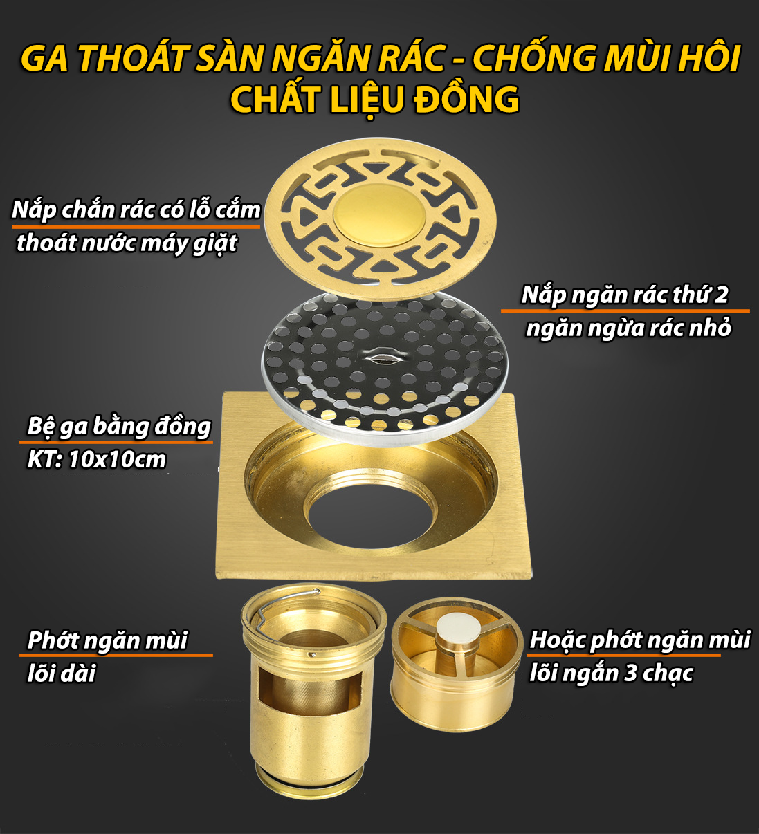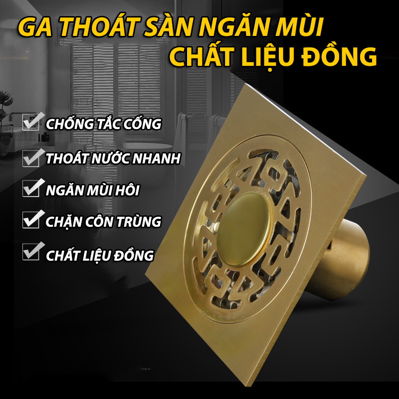 Ga thoát sàn ngăn mùi hôi, chống trào ngược, chặn côn trùng chất liệu đồng VNM-MUX-11221