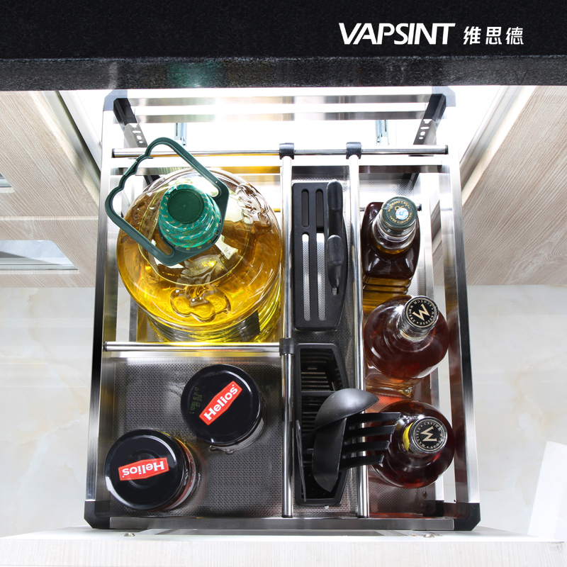 Giá gia vị dụng cụ bếp chất liệu Inox304 kèm thanh ray giảm chấn