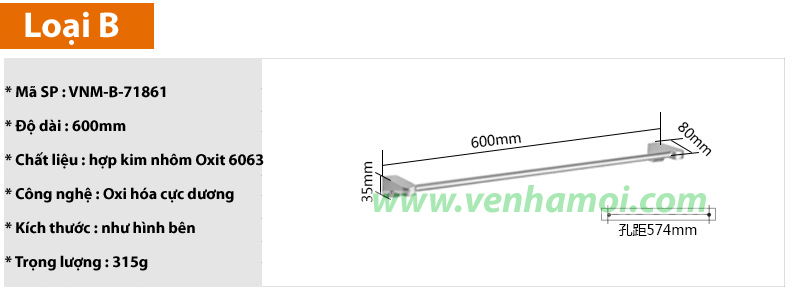 - Giàn vắt khăn đơn VNM-71181 được phân loại theo kích thước và mẫu mã của sản phẩm : + Giàn vắt khăn tắm đơn dài 40cm A1 + Giàn vắt khăn tắm đơn dài 50cm A2 + Giàn vắt khăn tắm đơn dài 60cm A3 + Giàn vắt khăn tắm đơn dài 60cm A4 + Giàn vắt khăn tắm đơn dài 70cm A5 + Giàn vắt khăn tắm đơn dài 80cm A6 + Giàn vắt khăn tắm đơn dài 60cm Loại B + Giàn vắt khăn tắm VNM-72581L : chất liệu hợp kim nhôm oxit phủ bóng + Giàn vắt khăn tắm VNM-70681J : chất liệu hợp kim nhôm oxit phủ bóng |
