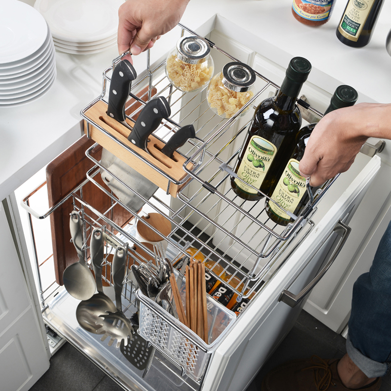 Kệ gia vị,dao thớt, Thiết kế kiểu gía rời tiện dụng có thể nhấc các giá trên kệ dễ dàng,thiết kế chỗ để riêng cho thớt tiết kiệm không gian |