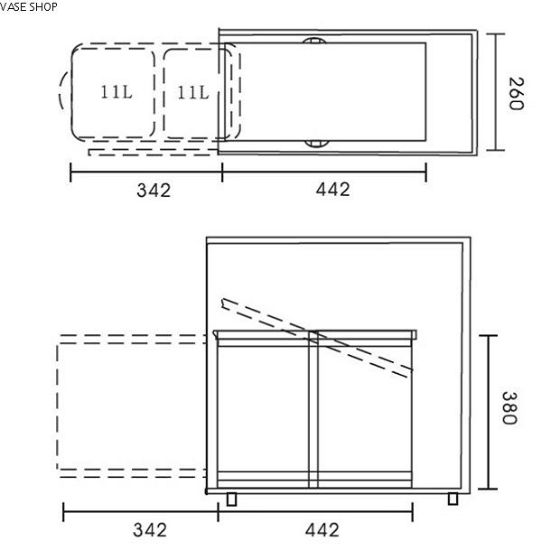Kích thước (WxDxH, mm): 260x442x380, đôi thùng 22 lít, được gọi là mở rộng đầy đủ