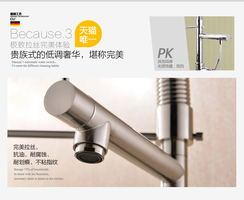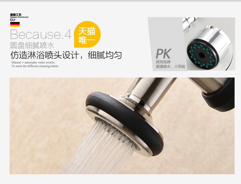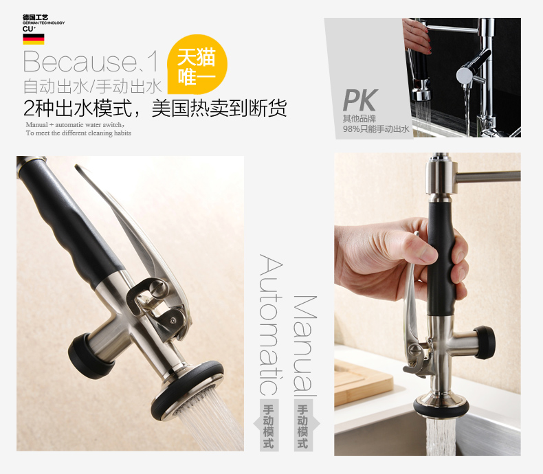 Vòi rửa bát có chức năng nóng lạnh - Vòi rửa bát có thể xoay 360 độ rửa sạch mọi góc cạnh - Bề mặt không in hằn vết vân tay, không làm xước tay,không bám dính dầu mỡ. - 2 chế độ xả nước hiện đại tiết kiệm nước: + chế độ xả thành nhiều tia nhỏ với lực xả mạnh + chế độ xả tập trung một đầu tạo bọt bóng nước, tạo tiếng nước nhẹ nhàng, êm ru, tránh bắn nước ra bên ngoài. |