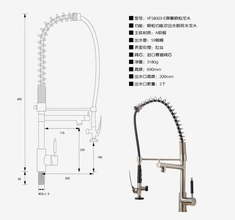 Vòi rửa bát lõi van gốm VNM-VFS8003-E